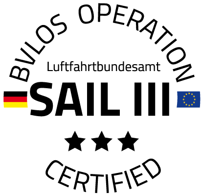 Juli 2024 - Første europæiske certificering af en VTOL fra det tyske Luftfahrtbundesamt (FAA) til BVLOS (Beyond Visual Line Of Sight) operationer på SAIL III-niveau i henhold til EASA-regler med vores ZERC.