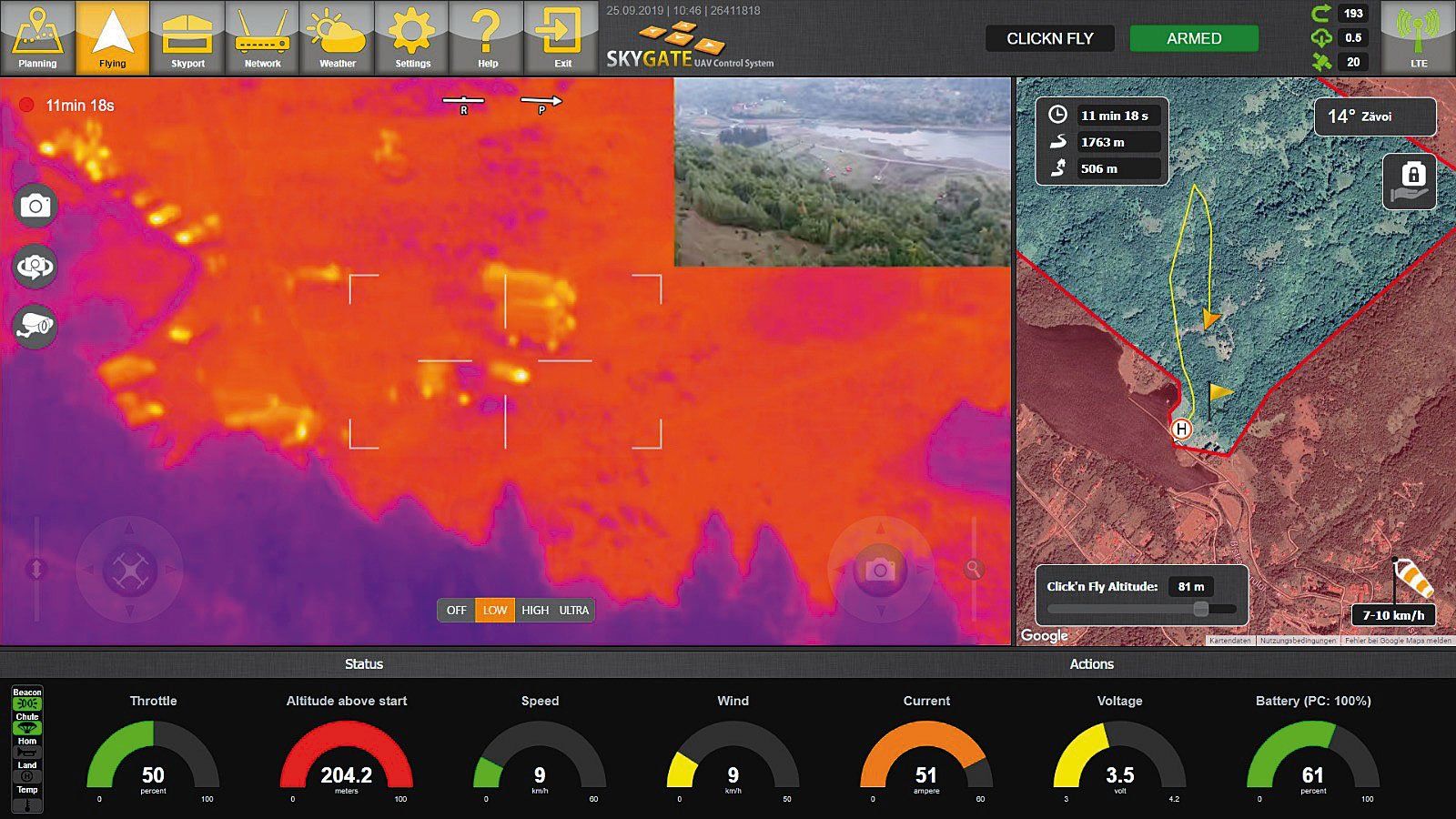 The Ground Control Station “SkyGate 2.0” is the heart of the Globe UAV system. The intuitive interface delivers real-time Full HD video, live drone positioning on the map, and all relevant flight data on screen. It can be operated with a standard keyboard, making drone control simple for your staff. No matter the weather conditions, the remote control is a thing of the past — your team can safely operate the drone indoors via SkyGate 2.0.